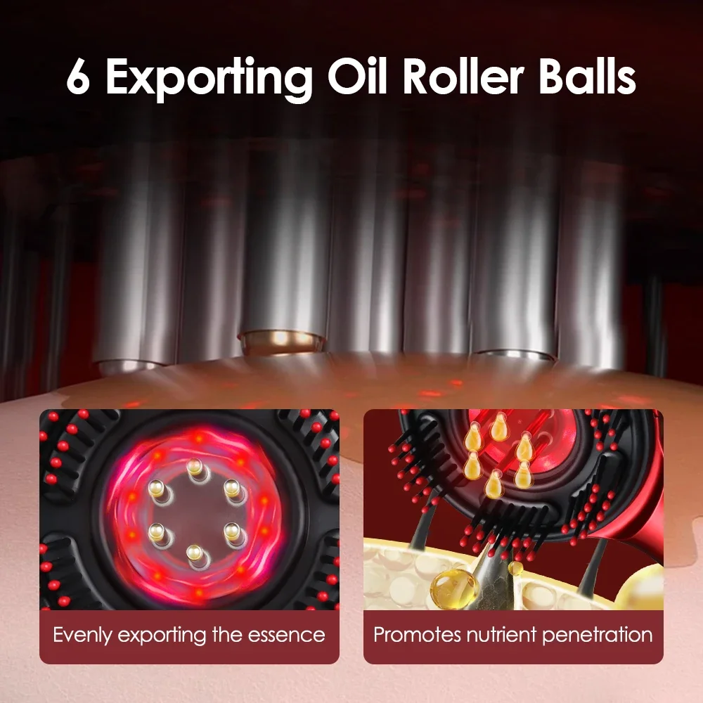 3.Featuring a 6ml liquid reservoir, the hair comb ensures even distribution of essential oils through 6 conducting liquid roller balls.It deeply nourishes scalp, helps nutrient penetration, and improves nursing effect.